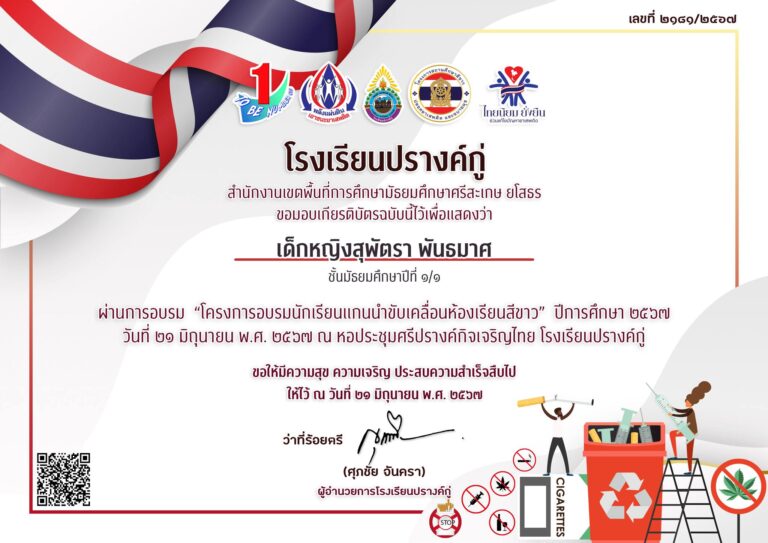 เกียรติบัตรกิจกรรมโครงการอบรมนักเรียนแกนนำขับเคลื่อนห้องเรียนสีขาว ปีการศึกษา 2567โดยadminวันที่24 มิถุนายน 256719 กรกฎาคม 2024