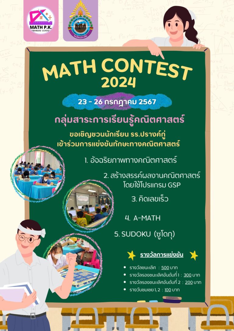 ขอเชิญชวนนักเรียน โรงเรียนปรางค์กู่ เข้าร่วมการแข่งขันขักษะทางคณิตศาสตร์ (MATH Contest 2024)โดยadminวันที่18 กรกฎาคม 256719 กรกฎาคม 2024